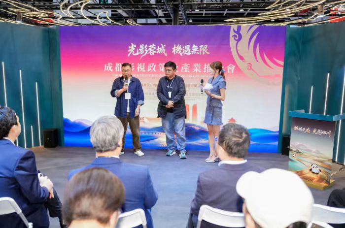 推介會(huì)上,主辦方通過政策推介短片,系統(tǒng)展示了成都影視產(chǎn)業(yè)的政策優(yōu)勢(shì)、產(chǎn)業(yè)布局和服務(wù)能力。成都將影視動(dòng)漫納入數(shù)字文創(chuàng)產(chǎn)業(yè)高質(zhì)量發(fā)展的六大核心賽道,出臺(tái)《促進(jìn)影視產(chǎn)業(yè)發(fā)展的若干政策》,形成省、市、區(qū)三級(jí)政策聯(lián)動(dòng)體系,覆蓋劇本孵化、精品創(chuàng)作、后期制作、宣傳發(fā)行、IP轉(zhuǎn)化、人才培養(yǎng)等全鏈條,為影視項(xiàng)目提供全方位保障。